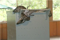 The snake is eating a pigeon.